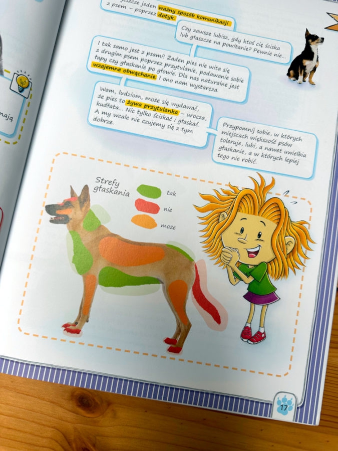 - strefy głaskania, gdzie psy lubią być dotykanie, a gdzie zupełnie nie;