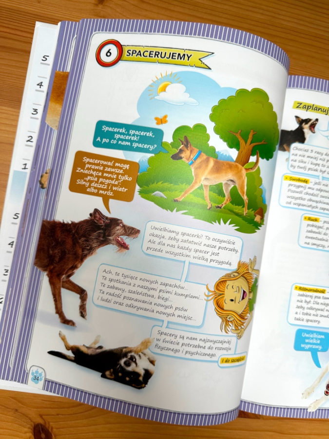 Autorka podsuwa praktyczne wskazówki jak dzielić się opieką nad psem, tak by zaangażować wszystkich domowników. Oraz jak postępować z czworonogiem w wyjątkowych sytuacjach takich jak podróż.