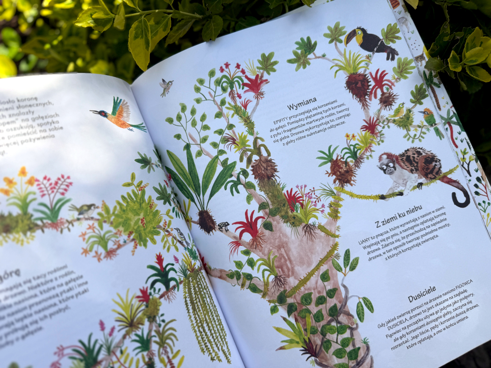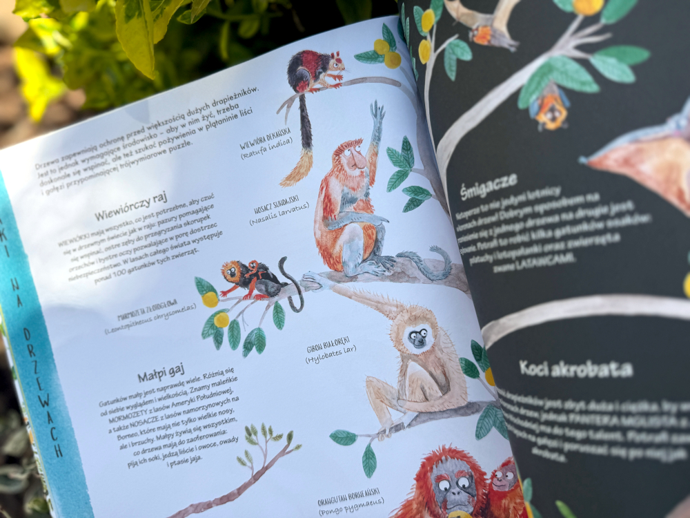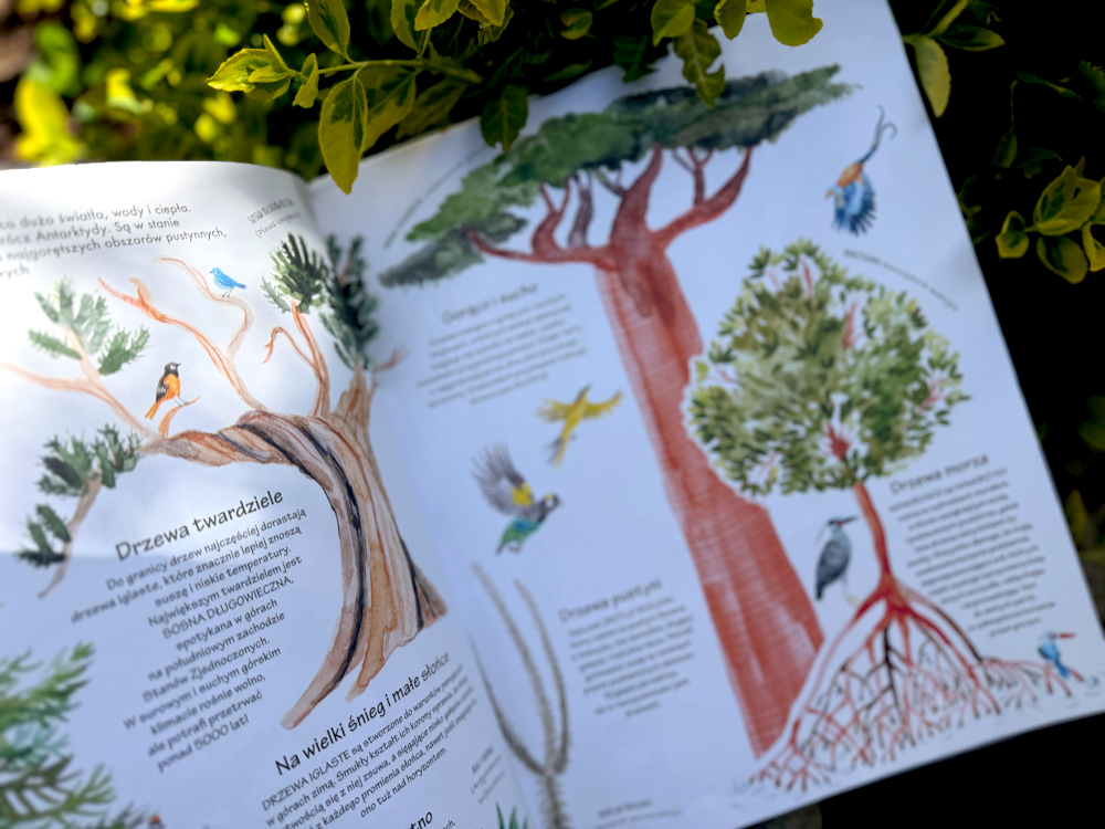 Dziś chciałam wrócić do wydanych jakiś czas temu atlasów przyrodniczych: Niezwykłe drzewa oraz Magia latania. To książki, które zachwycają nie tylko treścią, ale również formą. Autorce udało się uchwycić fascynujące zagadnienia, pokazać naturę z wielu perspektyw i zamknąć je w subtelnych wielobarwnych ilustracjach. Duży format sprawia, że wspólne czytanie oraz oglądanie staje się prawdziwą przyjemnością.