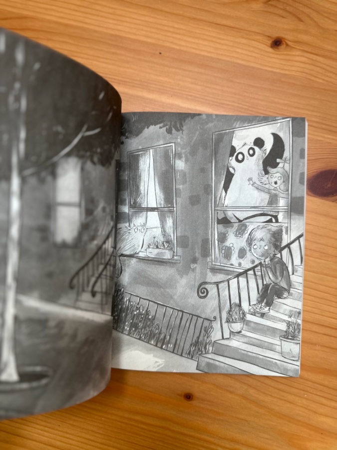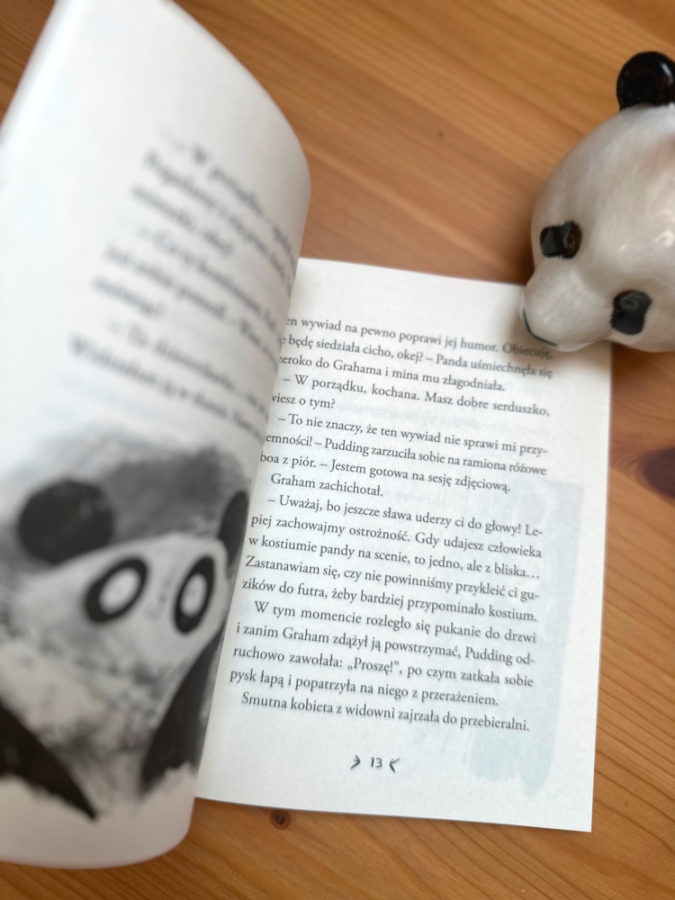 Panda na Scenie to drugi tom zabawnych przygód pandy z edynburskiego zoo oraz rodziny, która boryka się z problemami dnia codziennego. W pierwszej części Panda na Progu – pand Pudding nieoczekiwanie staje się nianią i przyjaciółką dla dzieci: małej Tabby oraz dziewiecioletniego Calluma. Mimo kłopotów na horyzoncie, panda staje się ważnym członkiem rodziny. W drugiej części Pudding wraz z tatą zostają artystami. Ich komiczne przedstawienie pełne żartów podoba się widzom, a sytuacja rodziny ma dzięki temu ulec poprawie. Pudding udaje, że nie jest pandą, a tylko występuje w jej skórze czyli kostiumie. Sprawy zaczynają się komplikować, bo ktoś chce rodzinie zaszkodzić. Panda na scenie to pełna optymizmu historia o tym, że warto spełniać swoje marzenia. Dążyć do celu. Przeczytajcie jakie tym razem przygody czekają Pudding i rodzinę Campbellów.
